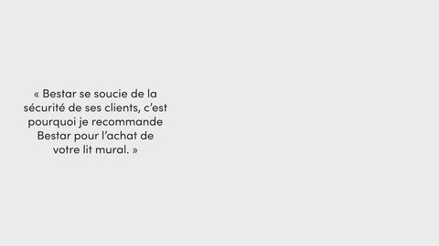 « Bestar se soucie de la sécurité de ses clients, c’est pourquoi je recommande Bestar pour l’achat de votre lit mural. »