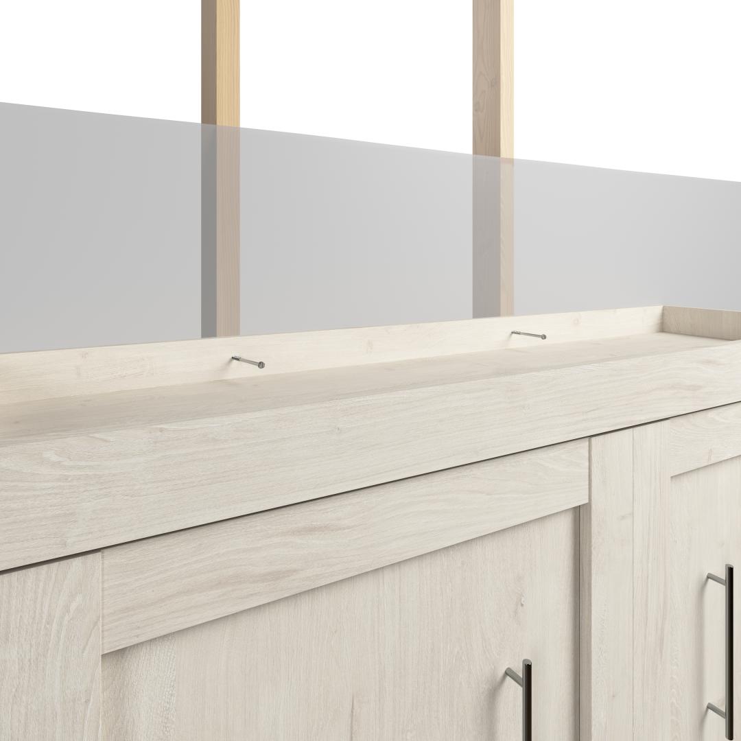 This Full Murphy Bed with 2 Shelving Units (109W) is the ideal space saver for a multipurpose room. The mattress support uses flexible slats that follow the curves of the body and absorb pressure for maximum comfort. The wall bed folds up and down smoothly thanks to the dual piston system. The Full Murphy bed can be used every night for a good night’s sleep. It accommodates most standard Full mattresses (8-10 inches thick, 60-90 lb, 54 x 75 inches) and supports up to 1000 lb (including mattress). The open wall bed extends 84.9 inches from the wall. The cabinet must be anchored to a wall with a minimum ceiling height of 86.4 inches. Allow a clearance of 30-36 inches around the open bed. The shelving units come with 2 fixed and 3 adjustable shelves to hold your belongings. The dual-mount wall bed mechanism attaches to the floor and wall for ease of assembly and maximum stability and durability. To avoid risk of injury, the Murphy bed must be installed to wall and floor structure by a professional or qualified person. Two people are required for assembly. Installation requires attachment to wood studs or masonry, removal of the baseboard, and drilling into the floor (if disassembly is required, holes may be covered with baseboards 0.5 inches or thicker). All necessary hardware is included. Do not use this product for children or pets under 50 pounds (22.7 kg). Backed by the Bestar 10 Year Manufacturer’s Warranty. North American made with globally sourced materials.