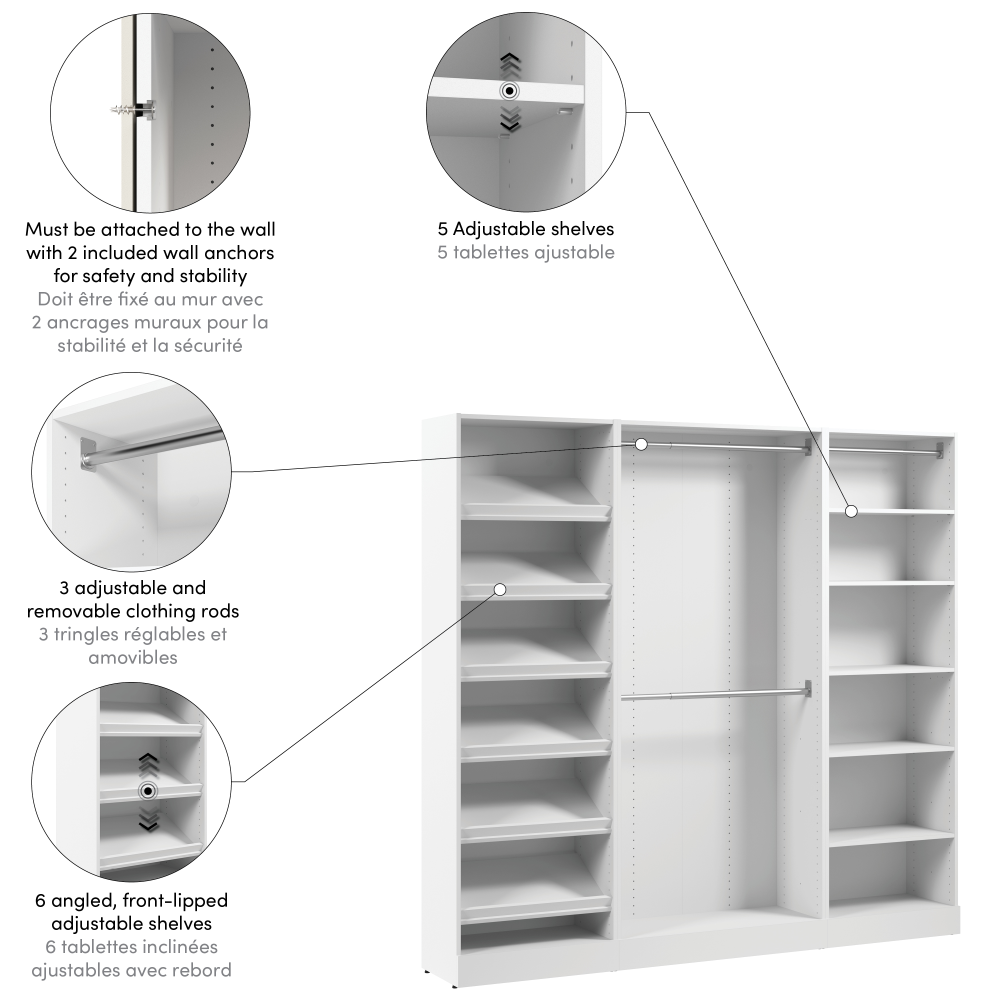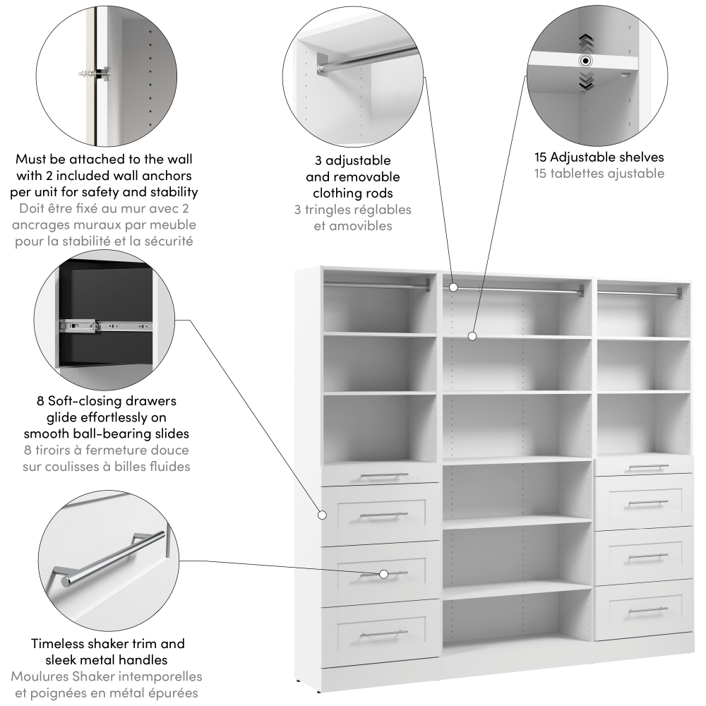 Modular Closet System with Shelves, Drawers & Clothing Rods, Shaker Style, 85W x 16D | 127616-000017