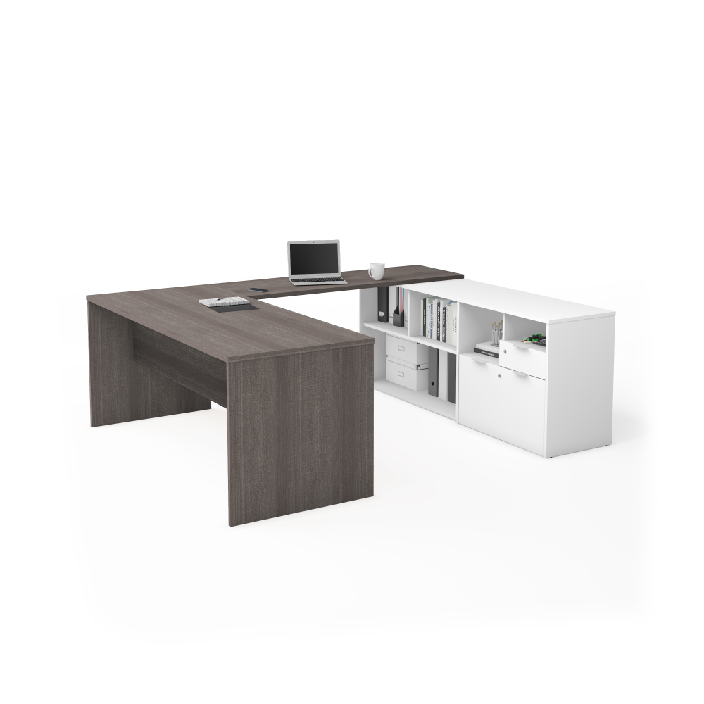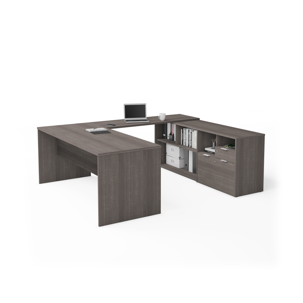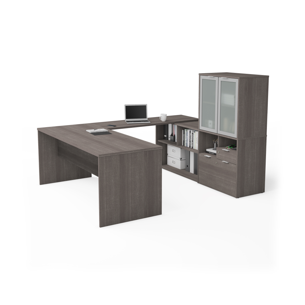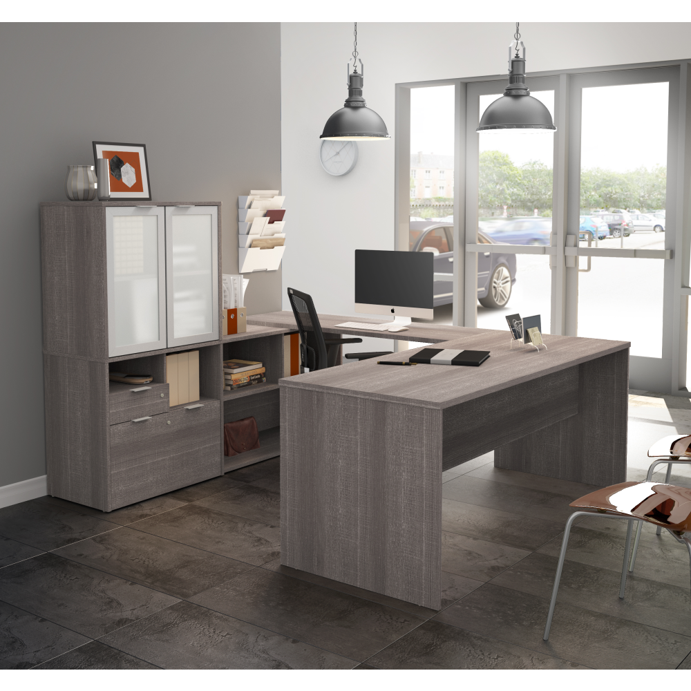 72W U-Shaped Executive Desk with Frosted Glass Door Hutch | 160861-47