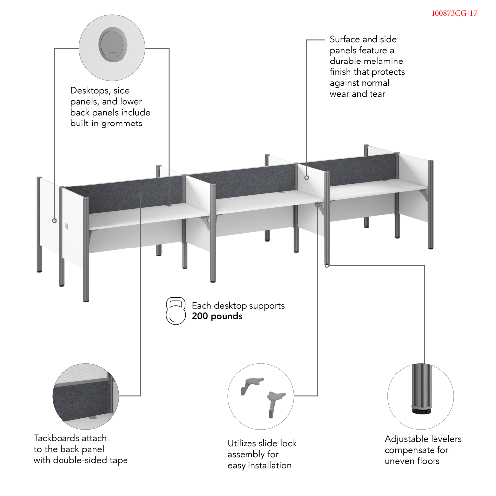 - Lasting Appeal: The Office Cubicle's surface and side panels feature a durable melamine finish that protects against normal wear and tear