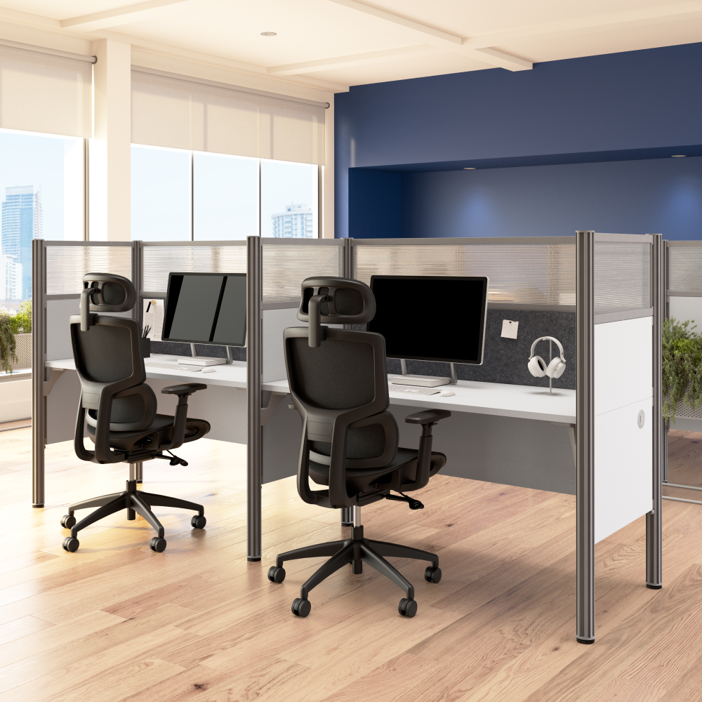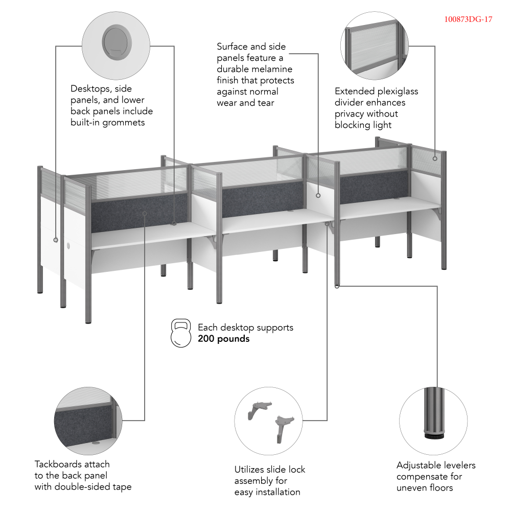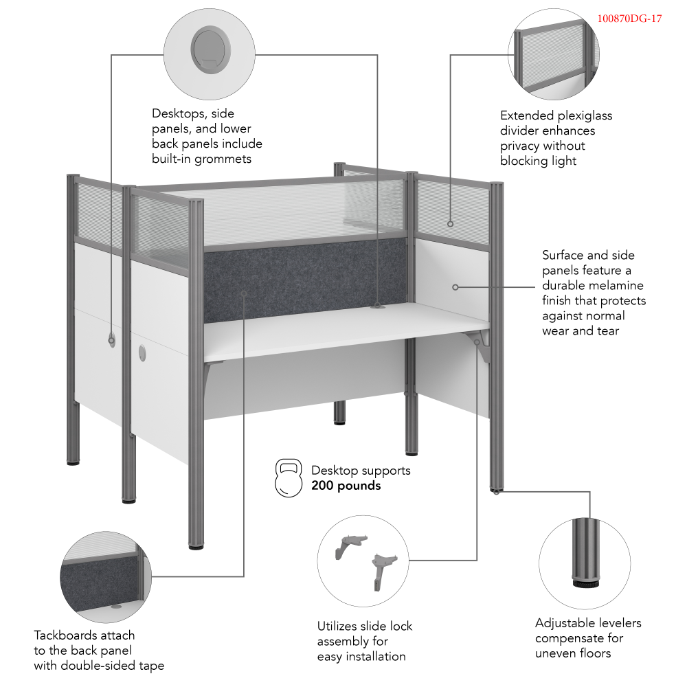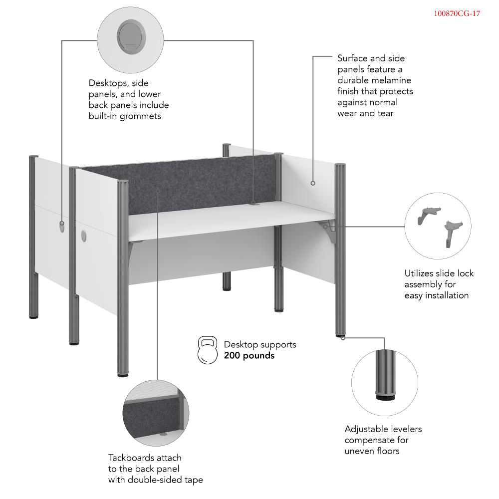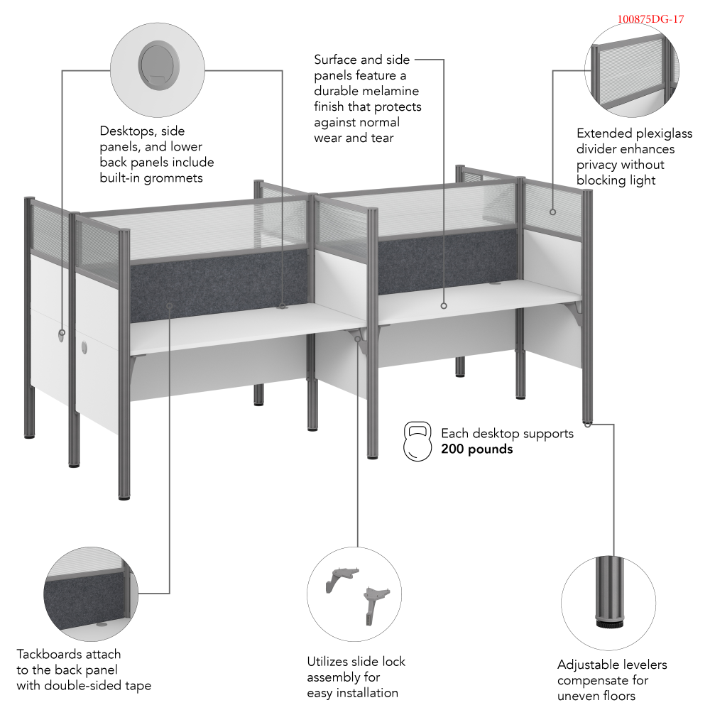 - Hassle-Free Setup: Modern office cubicle utilizes slide lock assembly for easy installation; adjustable levelers compensate for uneven floors