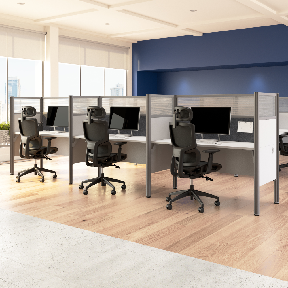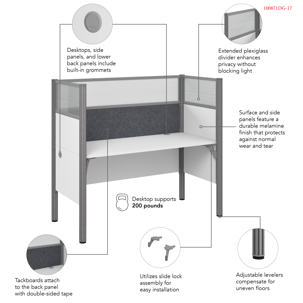 - Distraction Free: Single Cubicle Desk with High Panels provides a secluded workstation with an extended plexiglass divider for privacy