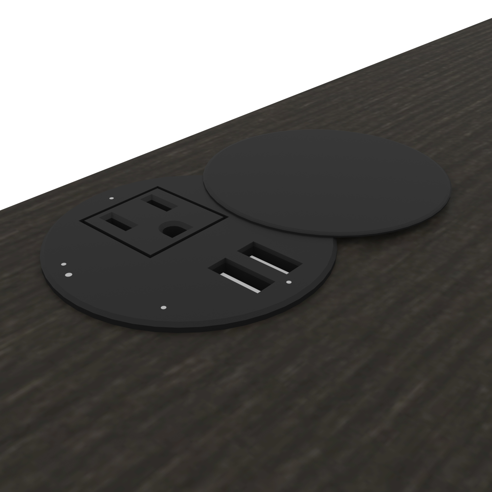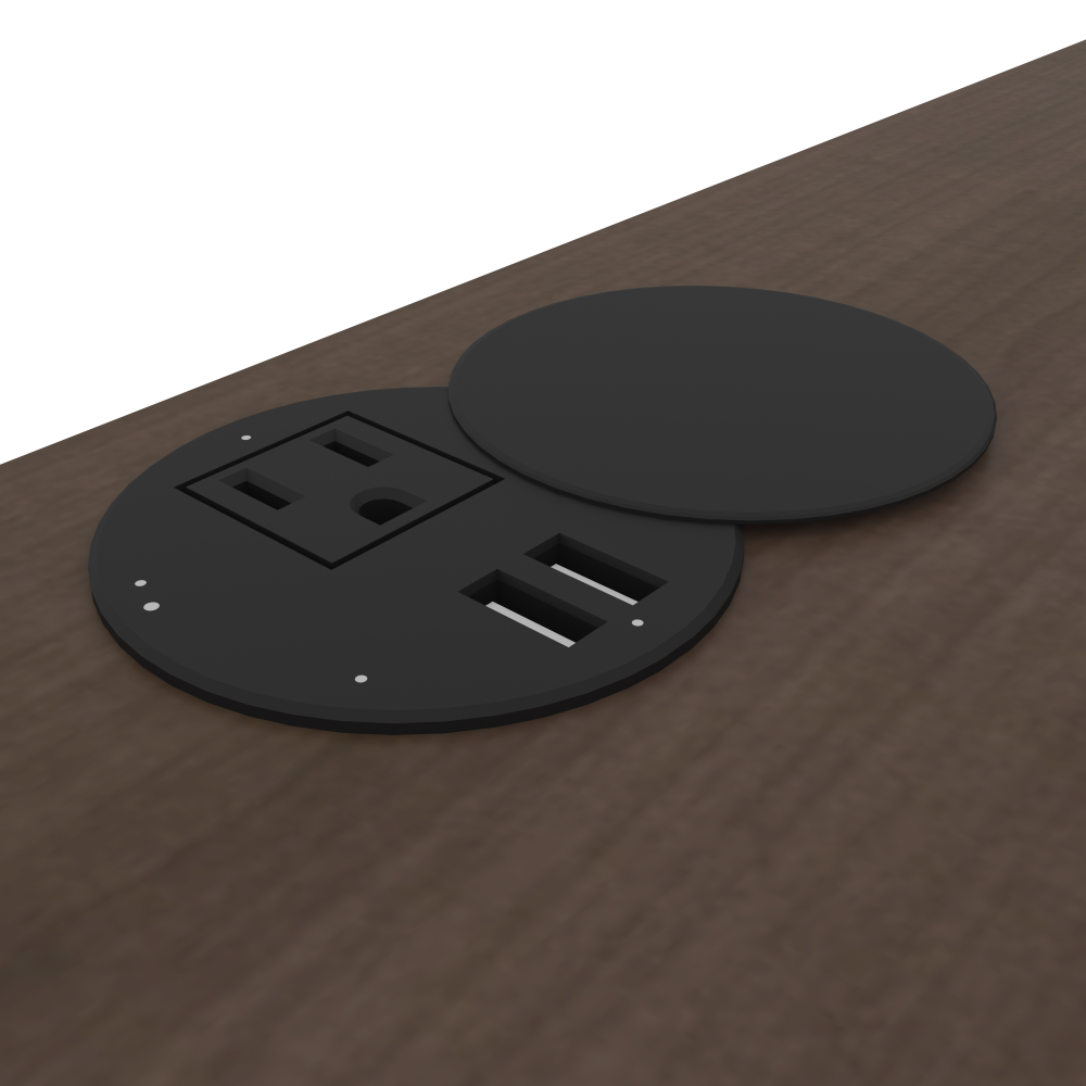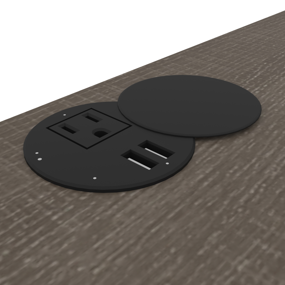 - 1 grommet for cable management and 1 USB/power outlet to keep devices charged