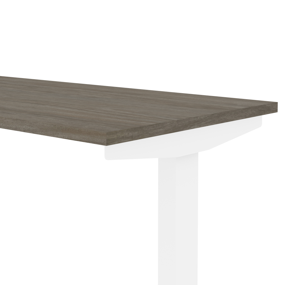 - 1-inch thick desktop with melamine finish resists scratches, stains, and wear