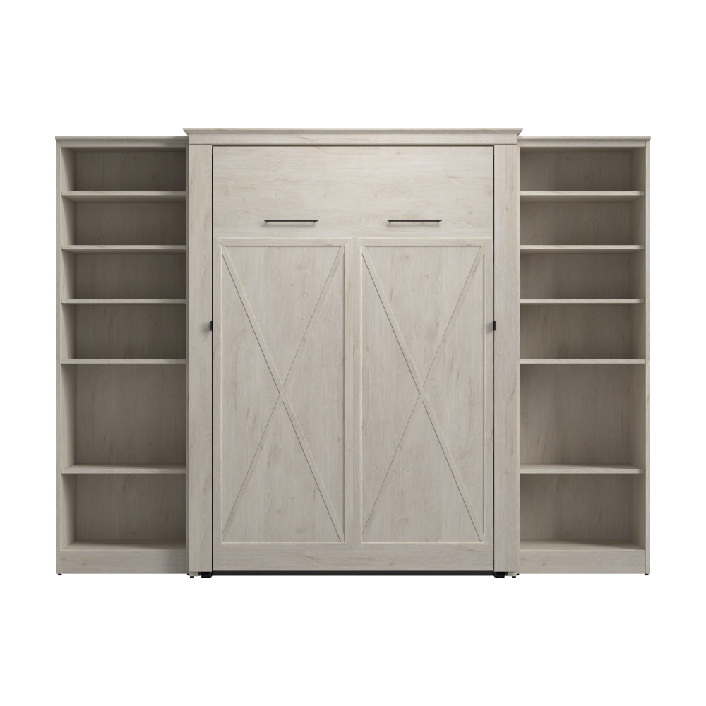 - Durable steel wall bed frame and laminated engineered wood cabinet with leg levelers; minimum ceiling height is 92.1 inches, and open bed extends 92.9 inches from the wall