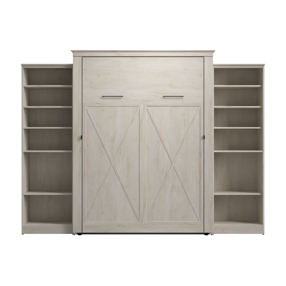 Bestar Murphy Beds are designed to be compatible with most standard innerspring or memory foam mattresses that are 8-12 inches thick, weighing 60-90 lbs, and measuring 60x80 inches (Queen size). For Full size Murphy Beds, mattresses are typically 8-10 inches thick, 60-90lbs and 54 x 75 inches. This ensures proper operation of the bed mechanism and optimal comfort. Please note that the mattress must not contain a box spring, as this will not fit properly in the cabinet. -