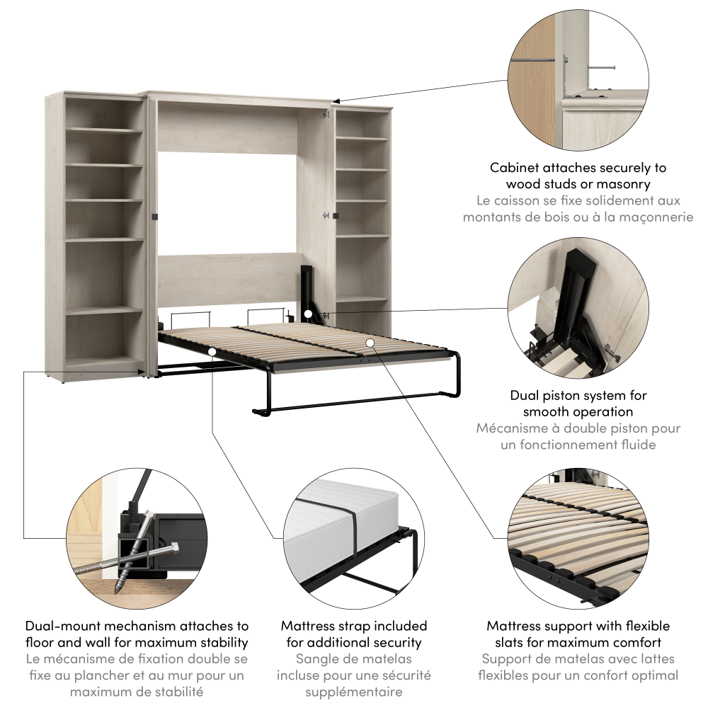- Dual-mount wall bed mechanism attaches to floor and wall for ease of assembly and maximum stability and durability