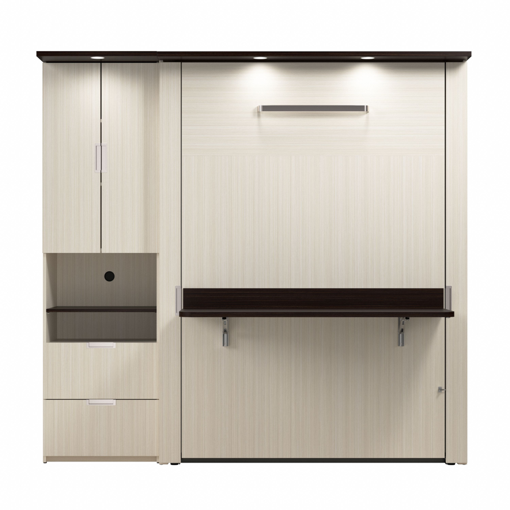 - Durable steel wall bed frame and laminated engineered wood cabinet with leg levelers; minimum ceiling height of anchoring wall is 88.4 inches