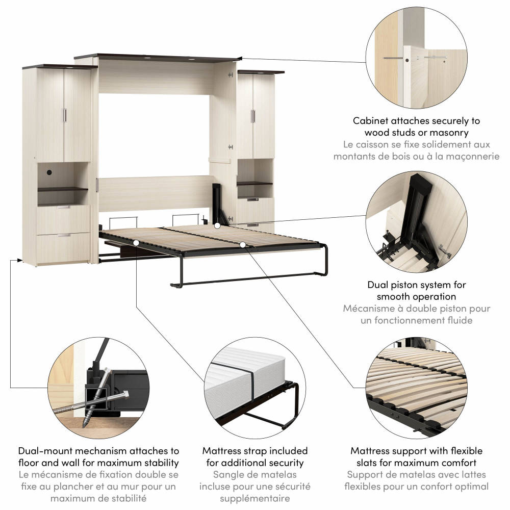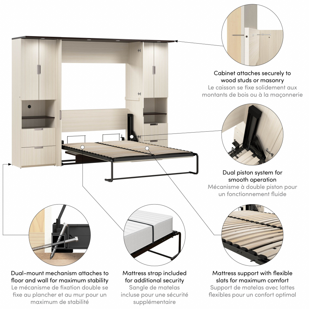 - Dual-mount wall bed mechanism attaches to floor and wall for ease of assembly and maximum stability and durability
