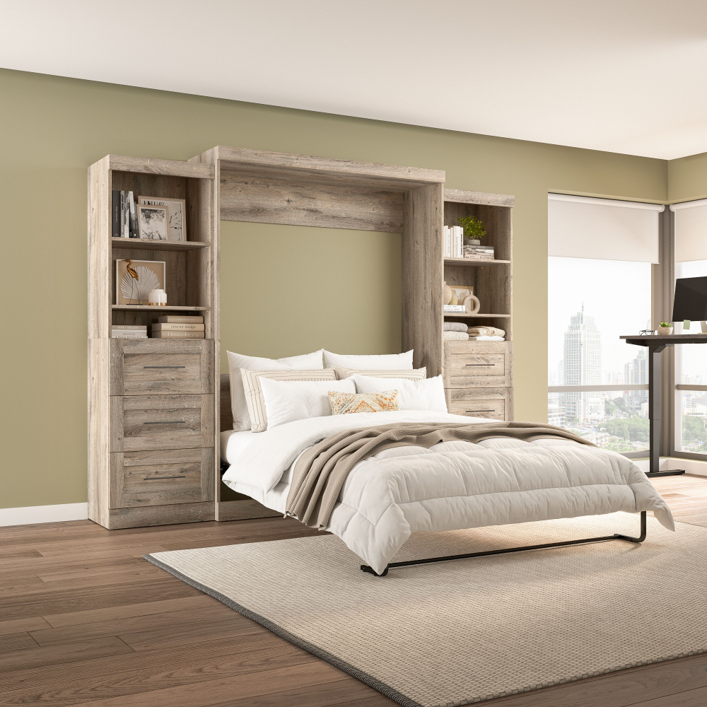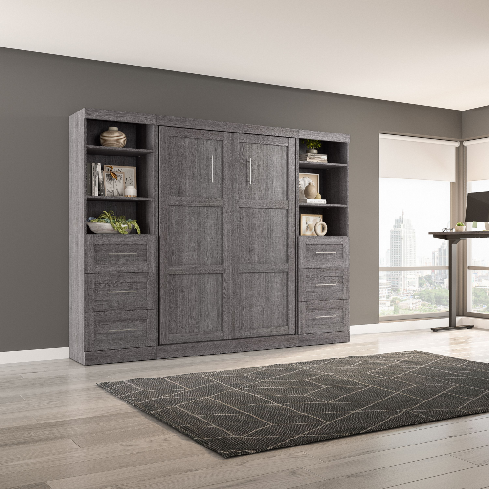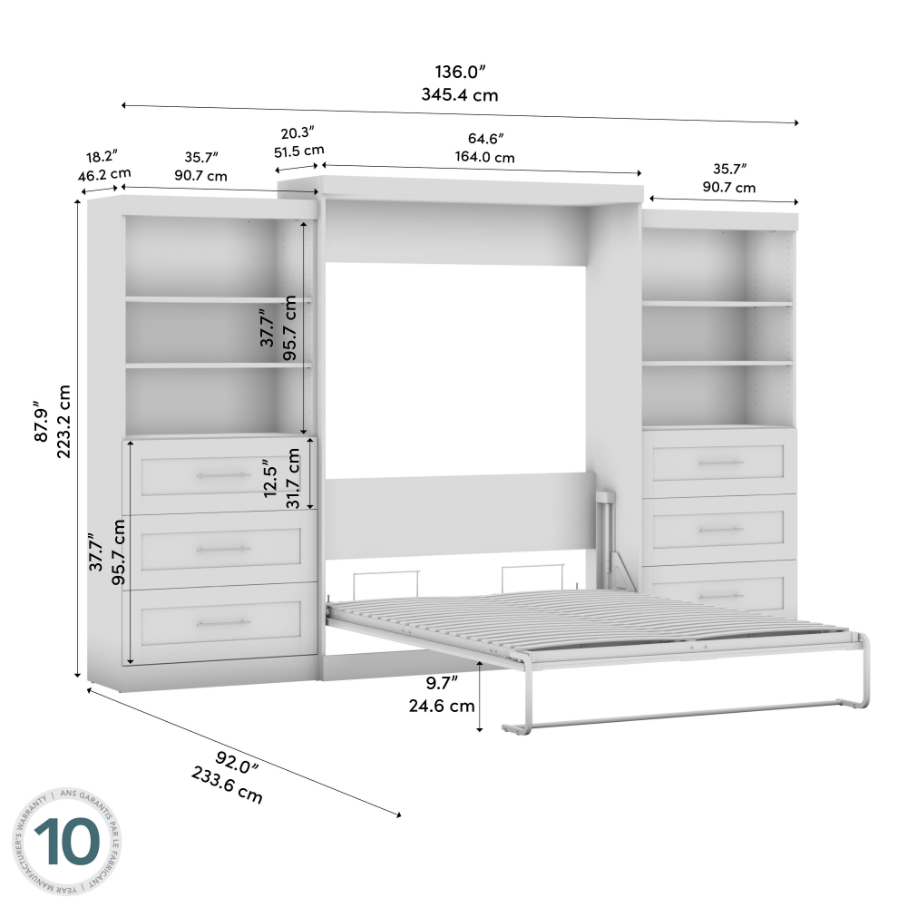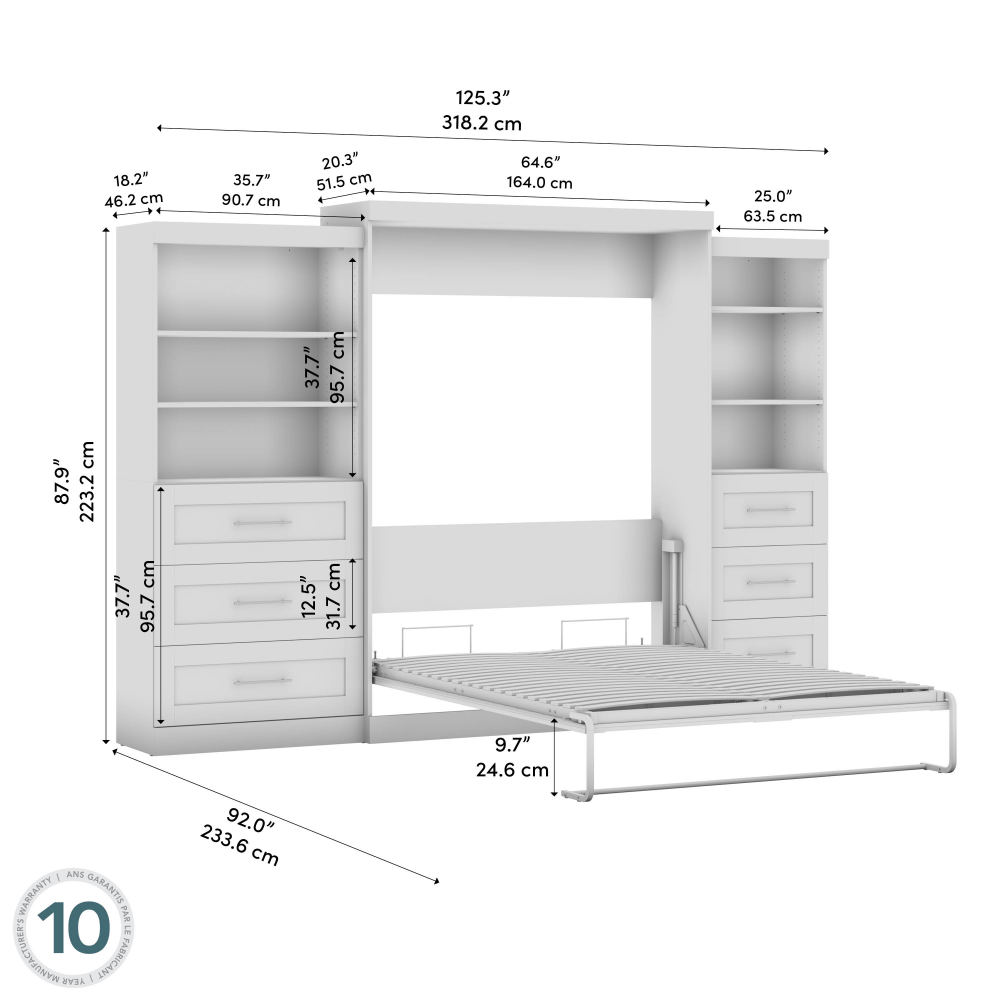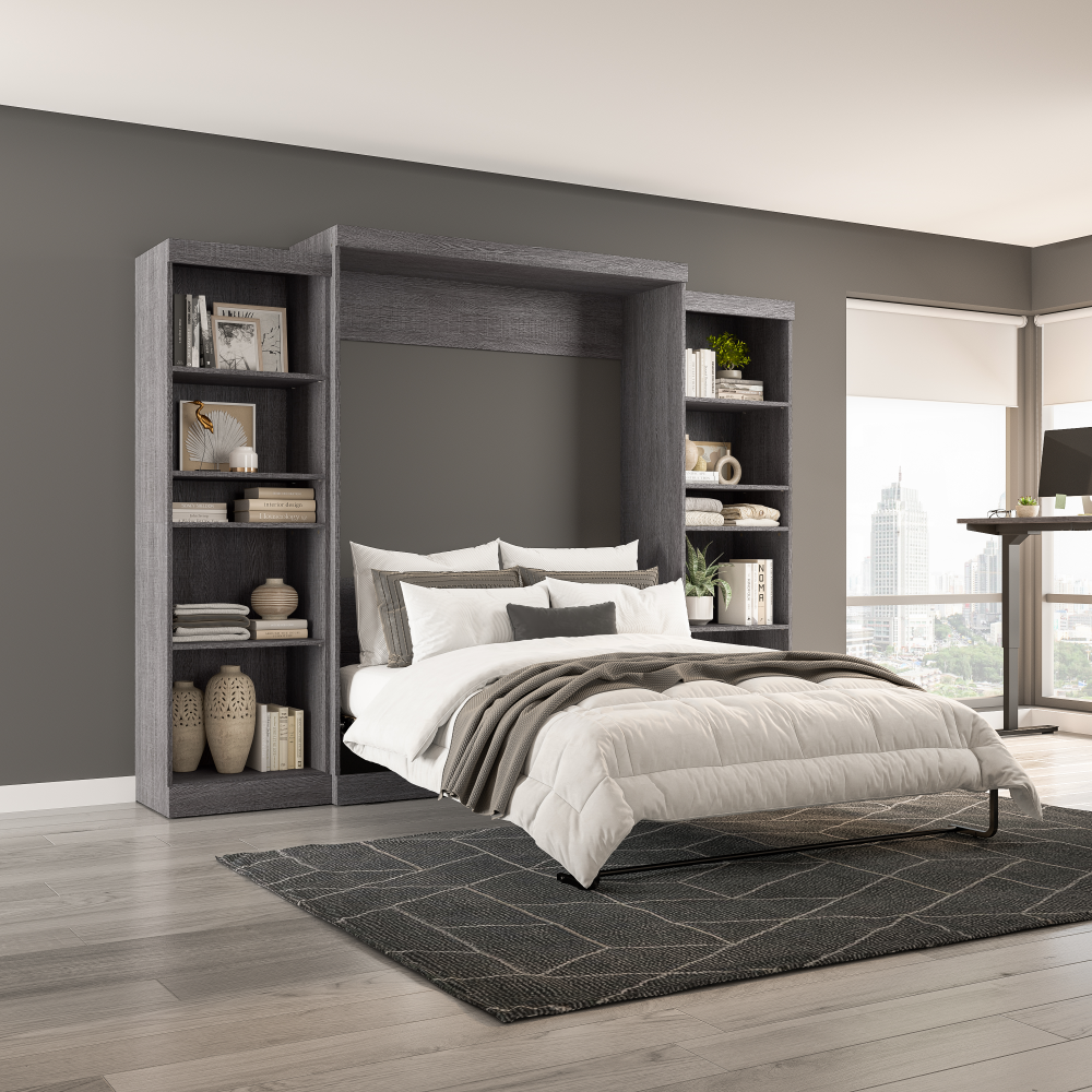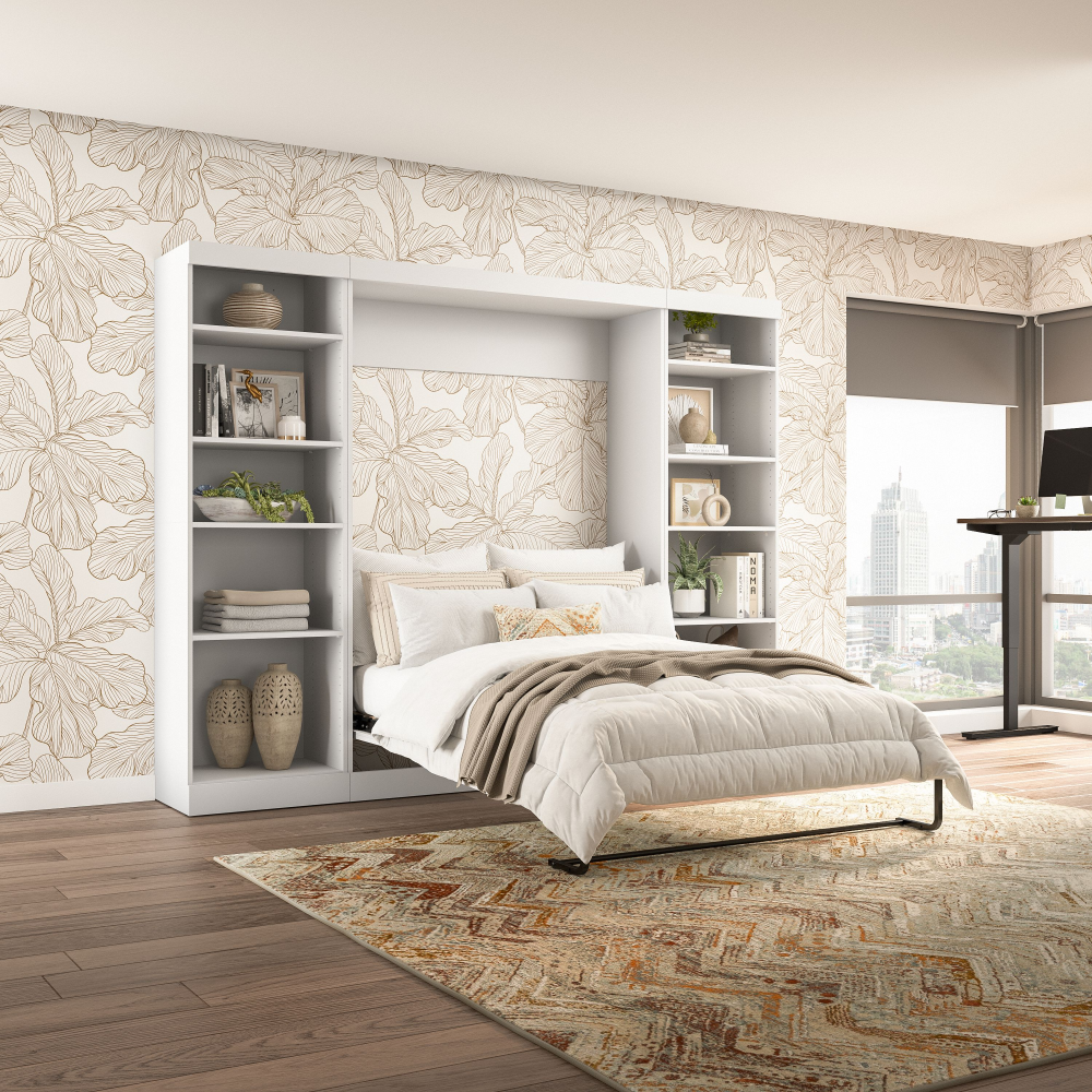 Bestar Murphy Beds are designed to be compatible with most standard innerspring or memory foam mattresses that are 8-12 inches thick, weighing 60-90 lbs, and measuring 60x80 inches (Queen size). For Full size Murphy Beds, mattresses are typically 8-10 inches thick, 60-90lbs and 54 x 75 inches. This ensures proper operation of the bed mechanism and optimal comfort. Please note that the mattress must not contain a box spring, as this will not fit properly in the cabinet. -