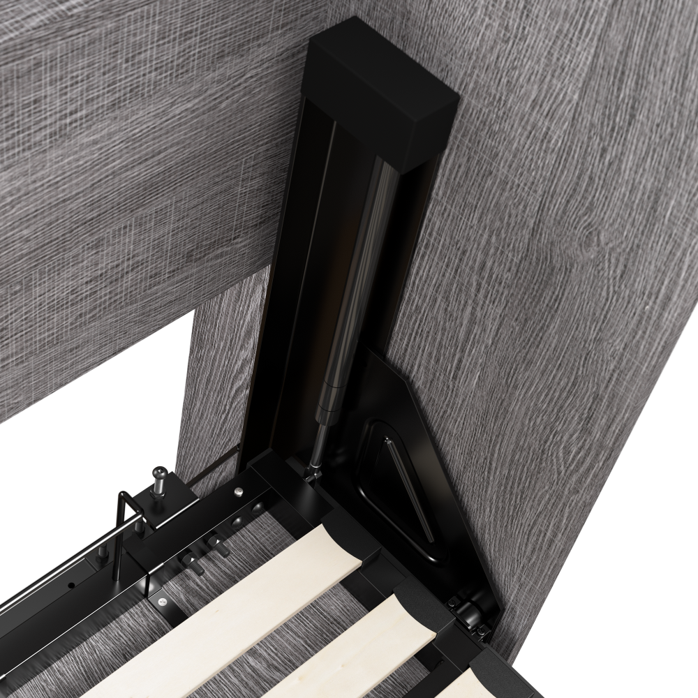 - Dual piston system allows you to fold the Murphy bed up and down smoothly and quickly; mattress support uses flexible slats that follow the curves of the body and absorb pressure for maximum comfort