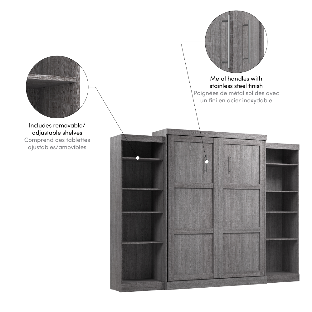 - Durable steel wall bed frame and laminated engineered wood cabinet with leg levelers; minimum ceiling height of anchoring wall is 86.4 inches